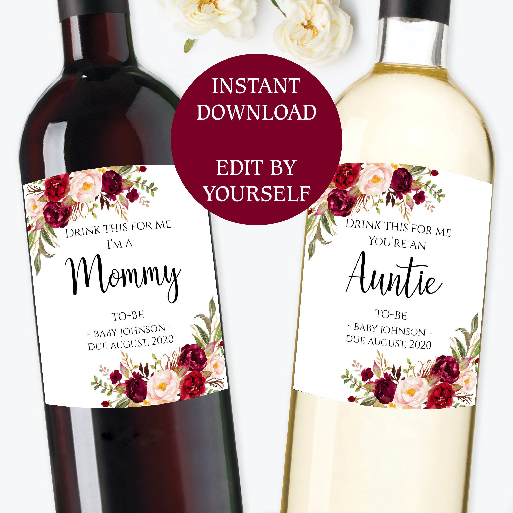 Amazon.com: Pregnancy Announcement Wine Labels SET of 5 Drink This For Me - I’m a Mommy-To-Be ...